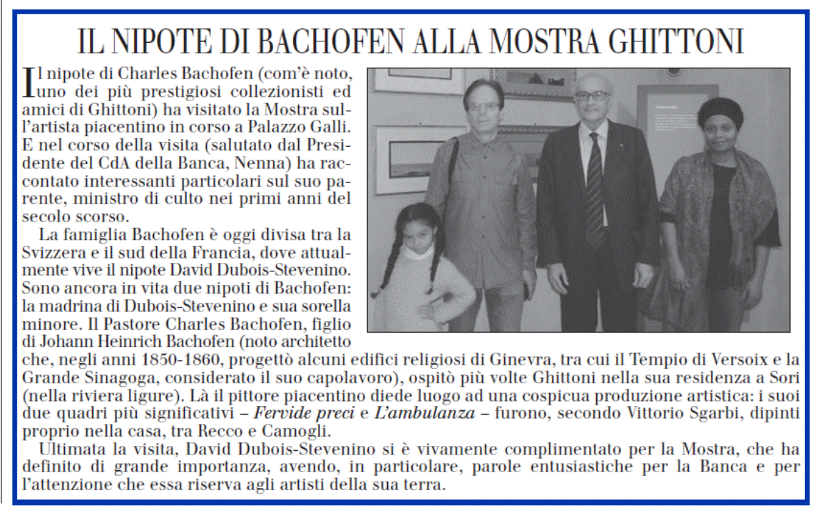 l’ouvrage « Francesco Ghittoni tra Fattori Morandi » consacré à l’amitié de Charles Bachofen et Francesco Ghittoni