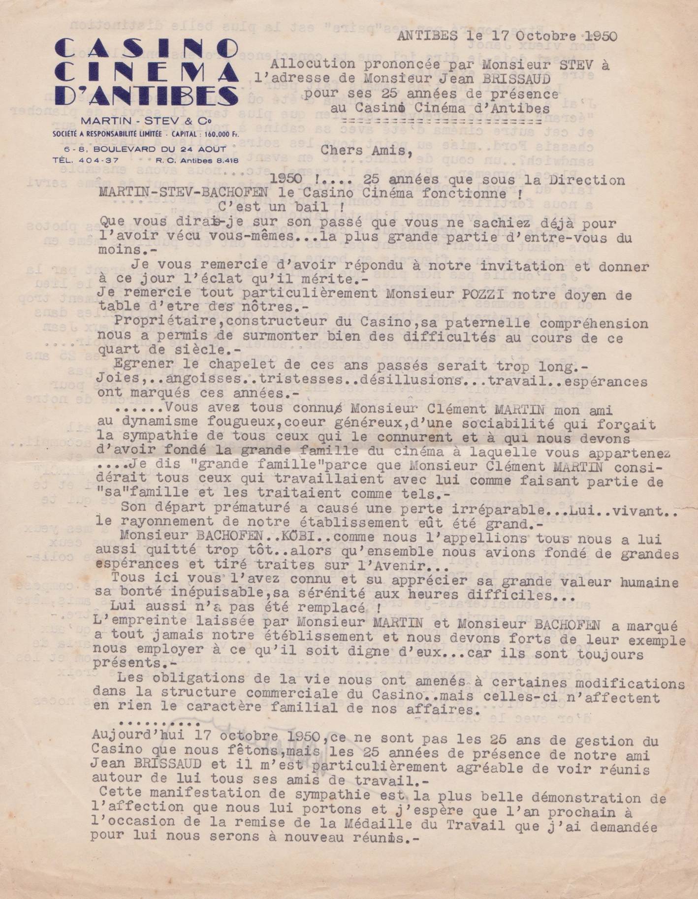 d'Antibes. Cette allocution est prononcée à l'occasion de la demande de la