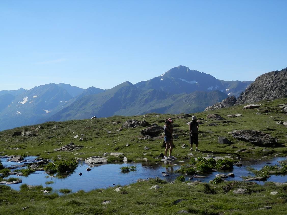 randonnée dans la haute montagne d'Andorre. A droite Eglise San Joan de